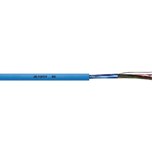 Verbindungsleitung für feste Verlegung in industriellen Steuersystemen, wie sie in der Meß-, Steuer-, Regelungstechnik sowie Signal- und Datentechnik benötigt werden, Industrie-Elektronik, Zur festen Verlegung auf und unter Putz in trockenen und feuchten Räumen, Im Freien kann das Kabel nur unter Putz verlegt werden, Hervorragend geeignet für kostengünstige Montage wie z.B. Anschlüsse in der Schneid-Klemm-Technik., Statischer Schirm aus Aluminium-kaschierter Kunststoff-Folie mit Beilaufdraht minimiert den Störeinfluss von hochfrequenten, elektromagnetischen Feldern, Entkopplung von Stromkreisen durch TP-Aufbau (Über- und Nebensprecheffekte), Massiver blanker Kupferleiter, Aderisolation aus PVC, 2 Adern zum Paar und 4 Paare zum Bündel verseilt (bei 2 x 2 x 0,8 als Sternvierer), Folienbewicklung, statischer Schirm aus Aluminium-kaschierter Kunststoff-Folie mit Kupfer-Beidraht, Außenmantel aus PVC Außenmantelfarbe: himmelblau (RAL 5015), Gemäß DIN VDE 0815 Bauart JE-Y(ST)Y…BD, Flammwidrig nach IEC 60332-1-2, Die 2-paarige Version (2x2x0,8) ist zum Stern-Vierer verseilt, JE-Y(ST)Y…BD EB: Für eigensichere Stromkreise (Zündschutzart i – Eigensicherheit) nach IEC 60079-14:2013 / EN 60079-14:2014 / VDE 0165-1:2014, Abschnitt 16.2.2,