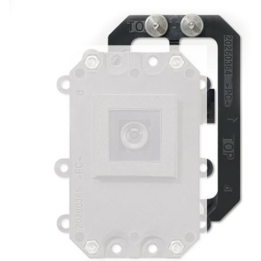 Vertikalhalterung bzw. Montagerahmen zur Montage des EinbaukameramodulsFVK2200 oder FVK2201 hinter bauseitigen Fronten. Der Montagerahmen wird hinter dem bauseitigen Ausschnitt in der Frontplatte eingeklebt. Ausschnittmaße 26,60 mm x 26,60 mm. Verwendbar für Materialstärken von 1 bis 3 mm. Details siehe Montageanleitung.