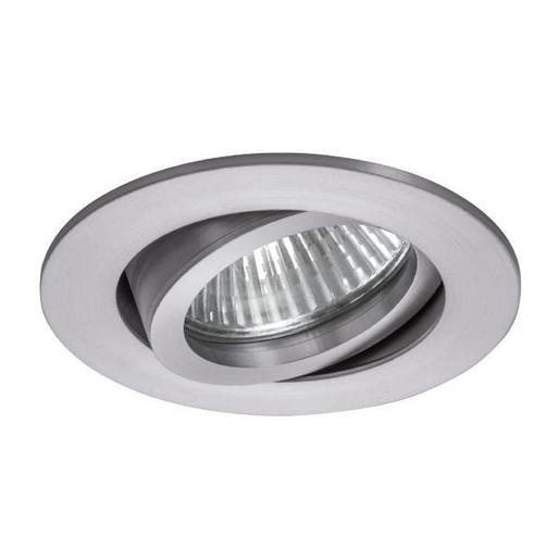 Einbaustrahler, GX5,3, alu matt, rund. Ausgeführt in kompakter Bauform für werkzeuglose Schnellmontage zum Deckeneinbau. Ausführung: GX5,3, Montageart: Einbaumontage, Montageort: Deckenmontage, Material: Aluminium, Schutzart raumseitig: nach DIN EN 60529: IP20, Schutzklasse: (EN 61140) III, Spannung: 12V, Leistung: 50 W, Anzahl der Leuchtmittel / Fassungen: 1 Stück, Verstellbarkeit: schwenkbar, ohne Betriebsgerät, Art der Dimmung: abhängig vom Betriebsgerät.