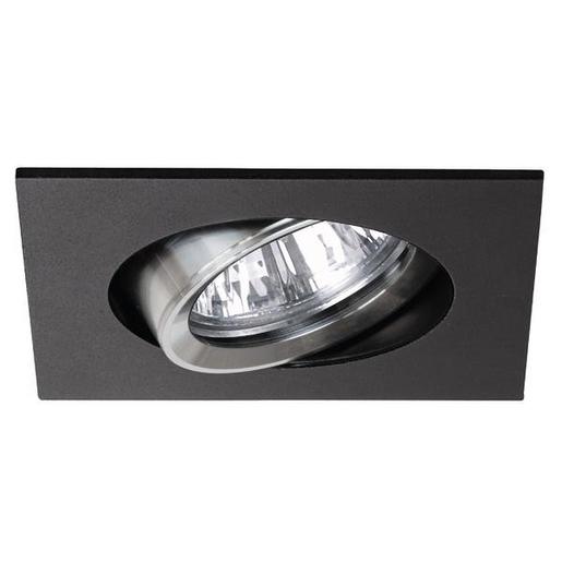 Einbaustrahler, GX5,3, schwarz / alu matt, quadratisch. Ausgeführt in kompakter Bauform für werkzeuglose Schnellmontage zum Deckeneinbau. Ausführung: GX5,3, Montageart: Einbaumontage, Montageort: Deckenmontage, Material: Aluminium, Schutzart raumseitig: nach DIN EN 60529: IP20, Schutzklasse: (EN 61140) III, Spannung: 12V, Leistung: 50 W, Anzahl der Leuchtmittel / Fassungen: 1 Stück, Verstellbarkeit: schwenkbar, ohne Betriebsgerät, Art der Dimmung: abhängig vom Betriebsgerät.