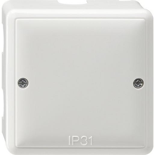 Abzweigdose (IP31) tropfwassergeschützt Reinweiß Merkmale: Mit drei Leitungs- und Kanaleinführungen.