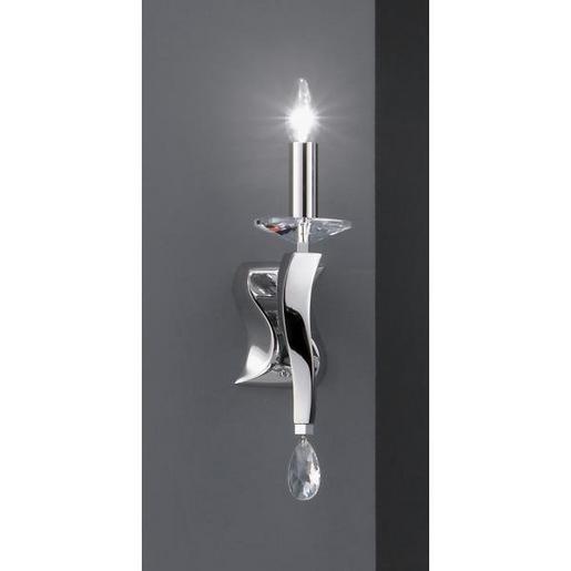 Wandleuchte chrom glänzend, mit Kristallen, chrom, sonstige. Ausführung in kompakter Bauform für die harmonische Implementierung in stimmige, architektonische Raumkonzepte. Wandanbauleuchte, mit Kristallen. Ausführung: E14, Montageart: Anbaumontage, Montageort: Wandmontage, Material: Messingguss / Kristall, Schutzart raumseitig: nach DIN EN 60529: IP20, Schutzklasse: (EN 61140) I, Spannung: 230V AC 50Hz, Leistung: 40 W, Anzahl der Leuchtmittel / Fassungen: 1 Stück, ohne Betriebsgerät, Art der Dimmung: sonstige.