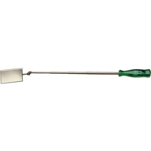 Vernickelt vielfache Verstellmöglichkeiten durch Teleskop-Schaft und Spiegelkopf-Gelenk Kunststoffgriff rechteckige Spiegelform (68 x 38 mm) vernickelt 280 – 750 mm