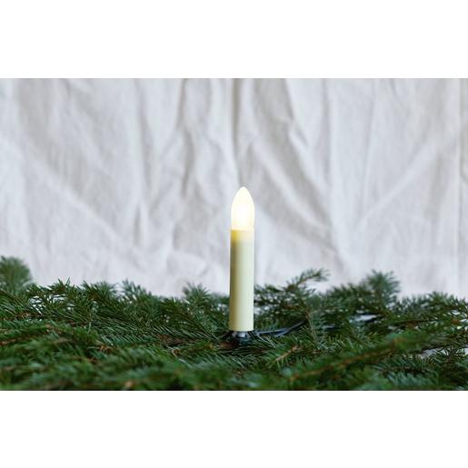 Lichterkette 15-tlg. LED Toplampen E10, warm-weiß, geriffelt, mattiert, , austauschbar, Schaft: glatt, elfenbeinfarben, Lichterabstand ca.0,5m, Zuleitung ca.1,5m, Stecker teilbar für innen