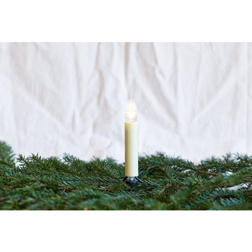 Lichterkette 15-tlg. LED Toplampen E10, warm-weiß, geriffelt, klar, austauschbar, Schaft: glatt, elfenbeinfarben, Lichterabstand ca.0,5m, Zuleitung ca.1,5m, Stecker teilbar für innen
