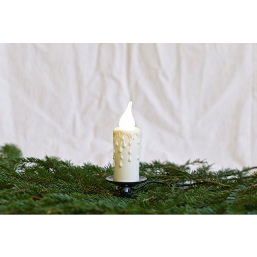 Lichterkette 15-tlg. LED Windstoßlampen E10, warm-weiß, mattiert, austauschbar, Schaft: mit Tropfen, elfenbeinfarben, Lichterabstand ca.0,5m, Zuleitung ca.1,5m, Stecker teilbar für innen