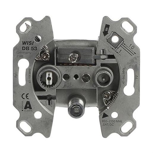 Antennensteckdosen-Einsatz Radio/TV/SAT, UP-Montagedosen und -Einsätze, Einsätze für Datenkommunikation, Antennensteckdosen-Einsatz Radio/TV/SAT 3 Anschlüsse/Stichdose Breitbandtechnologie 47-2.150 MHz SAT-Anschluss als schraubbare F-Buchse ausgeführt. Fernspeisbar über F-Buchse. Für DVB-T und Breitbandkabel-Anlagen. Für analoge und digitale Übertragung. Mit Spreize. Geringe Einbautiefe, Klasse A.