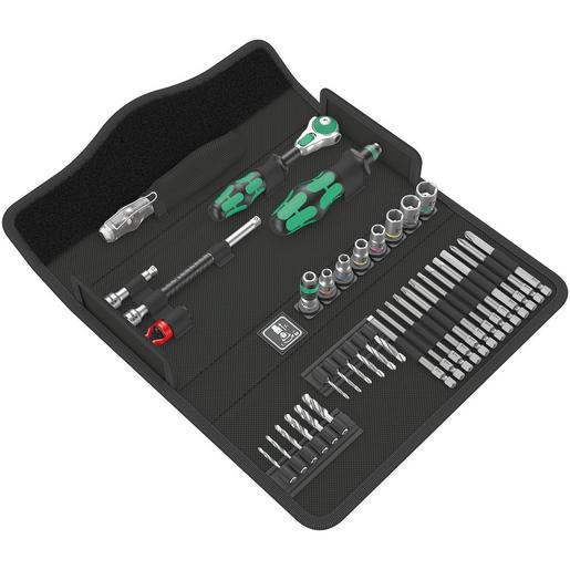 Kompaktes Werkzeug-Set mit den 39 wichtigsten Schraubwerkzeugen für den Metallbau. Mit der unglaublich schnellen 1/4″ Knarre Zyklop Speed samt Zubehör 7 Hand- und Maschinennüsse Größe 5,5-13 1 Bit-Handhalter 13 Bits mit 89 mm Länge 6 Kombigewindebohrer-Bits 6 Metallspiralbohrer-Bits mit Durchmesser 3-10mm 1 Schraubkralle zum Festhalten von Schrauben 1 Spannungsprüfer 247 textile Box mit sehr hoher Robustheit und Langlebigkeit aufrecht positionierbar zur übersichtlichen Lagerung im Werkstattregal zusätzlicher Oberflächenschutz durch textiles Außenmaterial geringes Gewicht und Volumen für vereinfachte Mobilität.