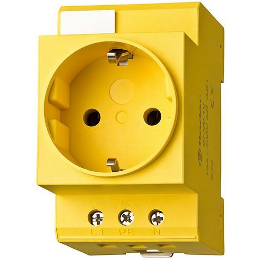 Steckdose für Reiheneinbau, Farbe gelb, für Wechselstrom 16 A 250 V AC1, mit Beschriftungsfläche, Ausführung mit Schraubanschlüssen, VDE-Zulassung