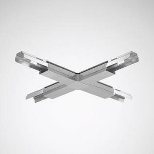 Verbinder für X-förmige Lichtbandanwendungen. Anschlussstecker und -buchsen im Lieferumfang enthalten (8/8). Gerätekörper aus Stahlblech, Abdeckung aus PVC. Oberfläche silbergrau beschichtet. Maße (L x B): 670 mm x 670 mm. Mit Einspeisungsmöglichkeit von oben.