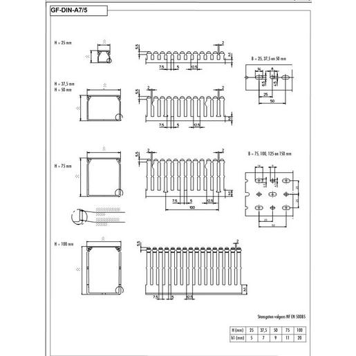 Unser Verdrahtungskanal GF-A7/5 LF wird aus bleifreiem Hart-PVC gefertigt. Der Verdrahtungskanal wird in grau RAL7030 und schwarz hergestellt. Die Einsatztemperatur liegt bei -5 bis +65°C und besitzt Flammwidrigkeit V0 nach UL94. Natürlich