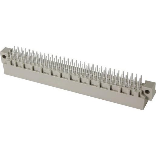 Messerleiste, Wellenlötanschluss, Bemessungsstrom: 2 A, Kontakte: 64, gerade, Kupferlegierung, Edelmetall über Ni steckseitig, Sn über Ni anschlussseitig, Anforderungsstufe: 2, nach IEC 60603-2, Kodierung: Kodierung mit Kontaktverlust, Leiterplattenbefestigung: mit Flansch, Thermoplastischer Formstoff, glasfaserverstärkt, RAL 7032 (kieselgrau)