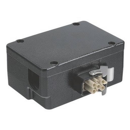 Energieverteiler, mit 1x Han Q 4/2, Buchseneinsatz, im Han-Compact Anbaugehäuse, Schneidklemmanschluss, für flexible Leiter nach IEC 60228 Klasse 5, Kontakte: 6, Leiterquerschnitt: 4…6 mm², Werkstoff Gehäuse: Aluminium-Druckguss, RAL 9005 (tiefschwarz), Schutzart: IP65