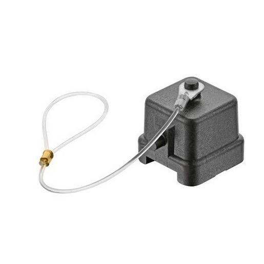Abdeckkappe, für Kupplungsgehäuse, Kunststoff, mit Befestigungsschnur, Baugröße: 3 A, Längsbügel, Werkstoff Gehäuse: Polycarbonat (PC), RAL 9005 (tiefschwarz), Schutzart: IP44, IP65 / IP67 mit Dichtschraube 09200009918
