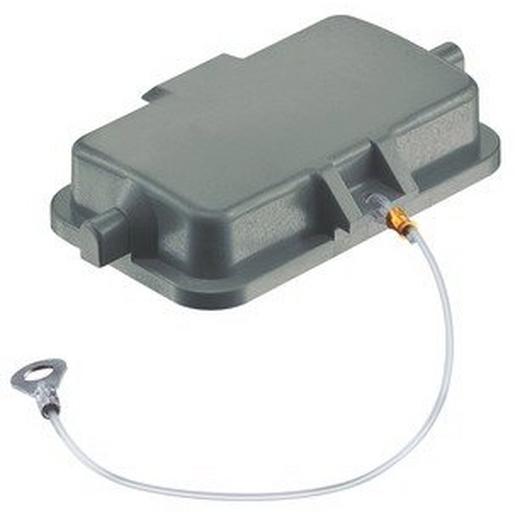 Abdeckkappe, für Anbaugehäuse, für Sockelgehäuse, für Kupplungsgehäuse, Kunststoff, mit Befestigungsschnur, Baugröße: 10 B, Längsbügel, Schutzart: IP65
