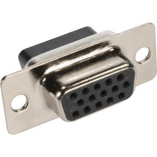 Steckverbinder, Crimpanschluss, Buchse, Baugröße: D-Sub 1, Thermoplastischer Formstoff, glasfaserverstärkt (PBTP), Shell: Stahl, vernickelt, schwarz, Kontakte: 15, Leiterquerschnitt: 0,14…0,25 mm², Kupferlegierung