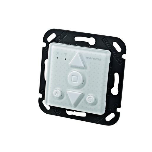 Wandsender weiß zur drahtlosen Bedienung von bis zu 10 WMS Empfängern auf einem Kanal. Passend in jedes Standard-Schalterprogramm. Bedienung eines Antriebs bzw. einer Leuchte oder einer ganzen Produktgruppe von bis zu 10 Aktoren des gleichen Produkttyps. Anzeige des Automatikzustandes über LED, Aufrufen und Speichern einer individuellen Komfortposition sowie Ein- und Ausschalten der Automatikfunktionen (z.B. Sonnenautomatik) möglich. Versorgung über handelsübliche Batterien. Rückmeldung von gesendeten Fahrbefehlen. Verschlüsselung des Übertragungsprotokolls.