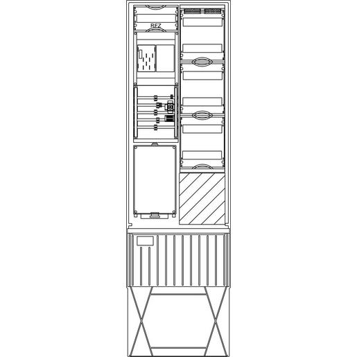 Zähleranschlusssäule Freiluft. N3 – Netzbetreiberspezifische Sonderausführungen „NORD“. Gehäuse: -Polyestersäule A340, Oberfläche gerippt, Farbe RAL 7035, Schutzart IP 44, Schutzklasse ll -Scharniertüre mit Schwenkhebelverschluss für 2 Profilhalbzylinder -Kundenzylinder eingebaut, inklusive 2 Schlüsseln. Außenmaß BxHxT: 583x2010x277,5 mm. Ausstattung: -Netzform: TN-C-S (Schienensystem 5-polig) -Hausanschlusskasten HAK NH00/3 -netzseitiger Anschlussraum, vorbereitet für SH-Schalter -Zählerplatte für BKE-I ohne Haube (je Zählerplatz) -Zählerverdrahtung Kupferleiter 10 mm² -Abgangsklemme 5-polig isoliert bis 25 mm². Sockel: inklusive angepresstem Eingrabsockel! Eigenschaften: -TE verbleibend: 72 -APZ: ohne -Sonderausstattung: -Spannungsversorgung und Steuerklemme für Zusatzanwendungen