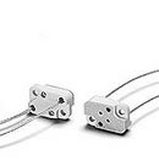 G/GY6.35-Fassung, GZ6.35-AnschlusselementGehäuse: Keramik, Abdeckplatte: Glimmer,T300, Nennwert: 10/24Mehrpunkt-Kontakte: NiLeitungen: Cu vn, mehrdrähtig 0,75 mm²,PTFE-Isolation, Länge: 140 mmDurchgangslöcher für Schrauben M3Lampenbefestigungslöcher: diagonalGewicht: 11 gTyp: 30300