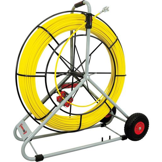 Kabeleinziehgerät Glasfaserstab Ø 11 mm – RUNPOTEC Gewinde RTG Ø 12 mm mit robuster Stahlhaspel (KTL/pulverbeschichtet) Ø 1000 mm inkl. neuem Doppel-Auslaufsystem (automatische Auslaufbremse und Schnellauslauf), zusätzliche Feststellbremse. Der Schäkel verfügt zusätzlich über ein Übergangsgewinde auf RTG Ø 6 mm um diverse Führungsstäbe (RUNPOSTICKS), Führungssonden, Kabelziehstrümpfe, Multifunktionskamera RC 2 und dgl. zu adaptieren. Glasfaserstab Bruchlast 6200 kg, Gesamtbruchlast 580 kg. Optimales Einsatzgebiet: für Rohrdurchmesser 80 – 250 mmAnwendungsfilm: einen kurzen, sehr informativen Anwendungsfilm können Sie durch Scannen des QR-Codes oder auf www.runpotec.com ansehenLieferumfang: 1 x GF11 Glasfaserstab Ø 11 mm, Länge: 150 m, Edelstahl-Endhülsen beidseitig (Anfang/Ende) 1 x Stahlhaspel Ø 1000 mm fahrbar inkl. Doppelauslaufsystem, 1 x Meterzähler, 1 x Schäkel