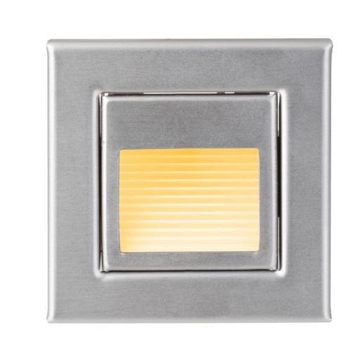 LED-Wandeinbauleuchte, quadratisch. Einbaumontage, Wandmontage. Inkl. Konverter zum Anschluss an 230 V-Netzspannung, schaltbar, und Hohlwand-Montagedose Ø DA: 68 mm / Einbautiefe: 65 mm. Montageart: Einbaumontage, Montageort: Wandmontage, Material: Edelstahl / Aluminium / Kunststoff, Schutzart raumseitig: nach DIN EN 60529: IP20, Schutzklasse: (EN 61140) I, Spannung: 230V AC 50Hz, Leistung: 1.2W, Anzahl der Leuchtmittel / Fassungen: 1.0 Stk, Farbtemperatur: 3.000 K, Lichtfarbe: weiß, mit Betriebsgerät, Art der Dimmung: schaltbar.