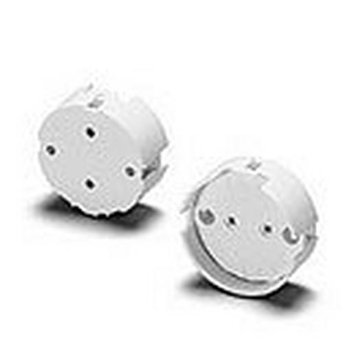 G13-Fassung zum Aufstecken auf Lampen T12Fassungsdicke: 9,5 mm,Gehäuse: PC, weiß, T110Vorderseitige Abdeckplatte: PBT GF, weißNennwert: 2/250Steckklemmen: 0,5-1 mm²Durchgangslöcher für Schrauben M3Gewicht: 10,5 gTyp: 47700