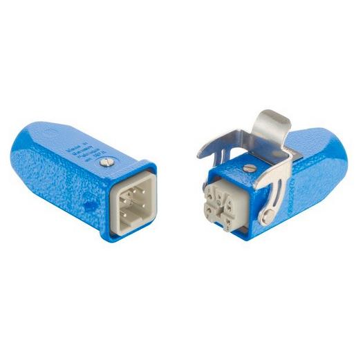 Steckverbinder-Sets, Komplettset, Han-Quick Lock Anschluss, Bemessungsstrom: 10 A, Kontakte: 4, Baugröße: 3 A, Längsbügel, gerader Kabeleingang, 1x M20 1x M20, Werkstoff: Zink-Druckguss, pulverbeschichtet, Schutzart: IP67 mit Dichtschraube 09200009918