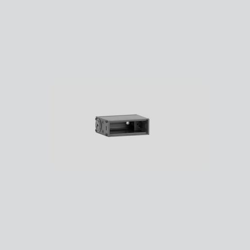 Einbaugehäuse Nr. 10633, für die Montage der Leuchte in Wände aus Beton oder verputztem Mauerwerk. Das Einbaugehäuse besteht aus Aluminium, Farbe Grafit. Abmessungen: 100 x 34 mm. Einbautiefe: 70 mm.