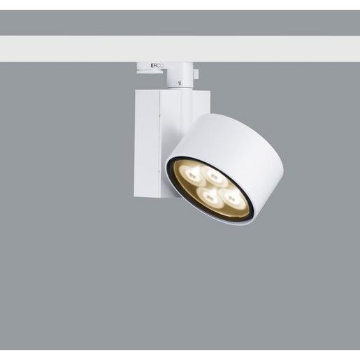 Weiß (RAL9002) LED 8W 800lm 3000K Warmweiß Dimmbar Version 3 Anschlussleistung 10W Spherolitlinse narrow spot Zylindrischer Leuchtenkopf: Aluminiumguss, pulverbeschichtet. 270° schwenkbar. Gehäuse: Kunststoff, am 3-Phasen-Adapter 360° drehbar. Elektronisches Betriebsgerät, dimmbar. Potentiometer zur Helligkeitsregelung. ERCO 3-Phasen-Adapter: Kunststoff. LED-Modul: Hochleistungs-LEDs auf Metallkern-Leiterplatte. SDCM<2. CRI>90. L80/B10 50000h. Kollimatoroptik aus optischem Polymer. Dimmen mit externen Dimmern (Phasenabschnitt) möglich. Dimmbereich 1%-100% Gewicht 0,99kg Energieeffizienzklasse EEI A+ ENEC10, VDE, CCC+S+E, GOST, Schutzklasse II
