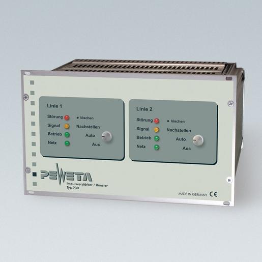 Impulsverstärker zur Erweiterung von Zeitdienstanlagen, 2 Linienausgänge, kurzschlußfest. Gesamtausgangsleistung 3 A (pro Linienausgang 1,5 A), Linienspannung 24 V, Impulsmodi frei wählbar als polwechselnder Minuten- oder Sekundenimpuls bzw. DCFport24 Telegramm. Steuert bis zu 500 (250 pro Linienausgang) konventionelle Minutenimpuls-Nebenuhrwerke oder 250 (125 pro Linienausgang) PEWETA DCFport24 Telegramm-Nebenuhrwerke. Integrierter Impulsspeicher mit Nachlaufeinrichtung für alle angeschlossenen Nebenuhren. Metallgehäuse als Einschubkassette für den Einbau in 19″ Baugruppenträger, B 213 (42 TE) x H 128 (3 HE) x T 230 mm. (Baugruppenträger ist Zubehör). Betriebsspannung 230 V AC.