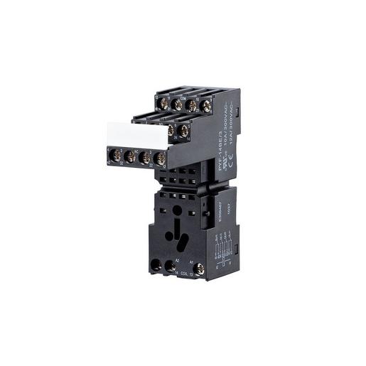 14-polige Relaisfassung für handelsübliche Industrierelais mit Schraubanschlüssen. Alle Metallteile sind gegen großflächige Berührung verdeckt angeordnet. Die Relaisfassung ist passend zu MC274., Haltebügel optional, integrierte Schnellbefestigung für DIN-Schiene, Klemmenbezeichnung nach EN 50022, getrennter Ein- und Ausgang