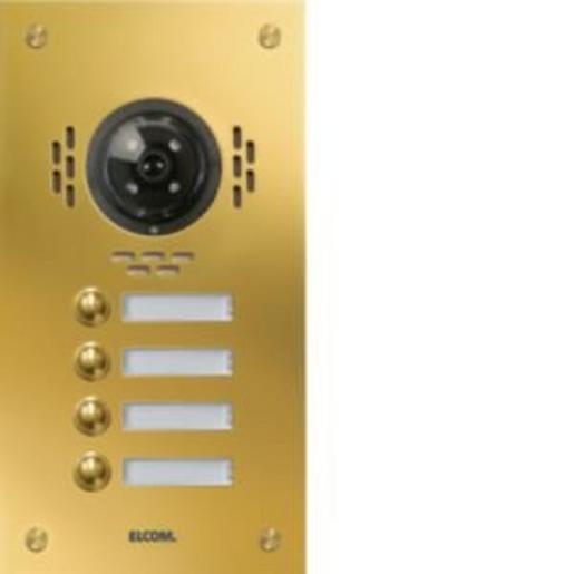 TMG-3/1 Aussenstat. für Kamera-Türlautsprecher 3/1 Rund-Taster UP PVD-mess. ESTA. Unterputz Video-Türstation für Sprechanlage/Intercom nach DIN EN 50486. Bestehend aus einer 2 mm dicken Frontplatte aus Edelstahl, poliert und veredelt mit witterungsbeständiger PVD-Messing-Beschichtung, mit Lochsprechöffnungen, runder Klingeltaster, Spezialschrauben, Namensschild (von vorn wechselbar) mit LED-Beleuchtung, Video-Vorbereitung und UP-Gehäuse 55 mm Tiefe. Hinweis: Passende Elektronik und Lautsprecher erforderlich.