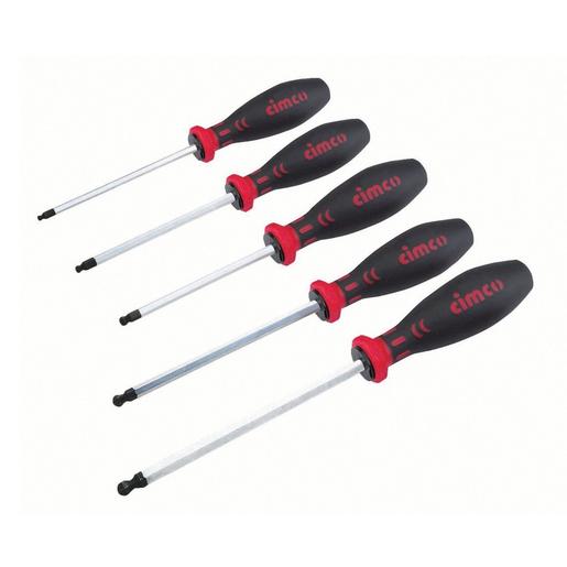 Nicht isolierte Kugelkopf Sechskant Stiftschlüssel mit blanker, mattverchromter Klinge. Sortiment 5 teilig. SW 3 x 100mm 11 7223, SW 4 x 100mm 11 7224, SW 5 x 100mm 11 7225, SW 6 x 125mm 11 7226, SW 8 x 150 mm 11 7228 aus hochlegiertem Chrom-Vanadium-Stahl, hochglanzverchromt, mit schwarzen Spitzen, Griffe aus schlagfestem, transparentem Kunststoff