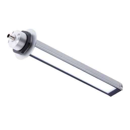Die Maschinenleuchte TUBELED_40 II ist durch ihre Ölbeständigkeit und das sprungsichere Einscheibensicherheitsglas über dem Lichtaustritt optimal für raue Fertigungsumgebungen geeignet. Mit einem Leuchtendurchmesser von ~40 mm schmiegt sich die TUBELED_40 II förmlich an die Maschinenoberfläche und ermöglicht den Einbau auch bei beengten Platzverhältnissen, wie z.B. in Mikropräzisionsmaschinen, Stanzautomaten, Erodiermaschinen oder Fertigungsanlagen. Das Licht wird über eine 100°-Optik und Light Forming Technologie in ein flimmerfreies, homogen strahlendes Flächenlicht umgewandelt. Aufgrund der speziellen Gehäuse-Geometrie zur Wärmeableitung ist die LED-Leuchte auch für Umgebungstemperaturen bis +60°C, in der ECO-Version sogar bis +70°C geeignet. Die Leuchte wird betriebsseitig an ein 24V DC-Netz angeschlossen. Alle Längen der TUBLED_40 II sind auch als kaskadierbare Version erhältlich, so dass mehrere Leuchten miteinander verkettet werden können. Die Leuchte verfügt über eine On/Off-Schnittstelle, womit lastfreies Schalten, Blinken und Dimmen möglich ist.
