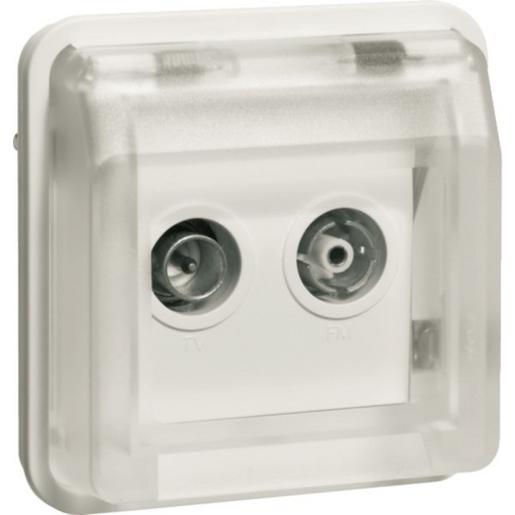 Antennen-Steckdosen-Einsatz 2Loch Einzeldose W.1 polarweiß. Antennen-Steckdose AP/UP mit transparentem Klappdeckel und Schraubklemmen, für digitale und analoge Übertragung, terrestrischen Empfang.