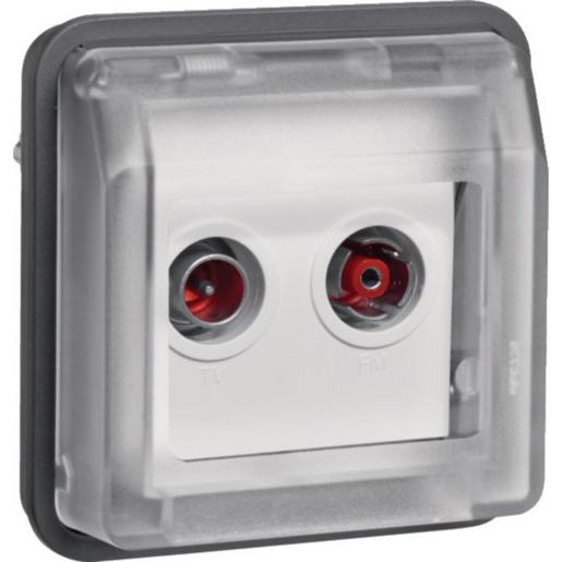 Antennen-Steckdosen-Einsatz 2Loch Durchgangsdose W.1 grau. Antennen-Steckdose AP/UP mit transparentem Klappdeckel und Schraubklemmen, für digitale und analoge Übertragung, terrestrischen Empfang.