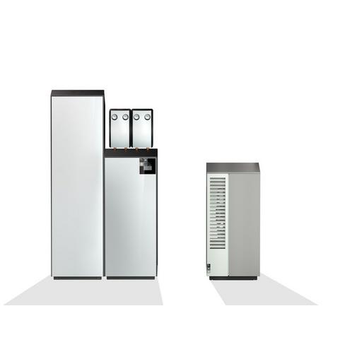 Heizungs-Wärmepumpe zum Heizen und Kühlen bestehend aus einer innen aufgestellten Hydraulikeinheit und einem Außenmodul, die über eine Last-, Kommunikations- und Kältemittelleitung (Sonderzubehör) verbunden werden. Radikal kleine Außeneinheit mit seitlichem Luftausblas zur wandnahen Aufstellung (0,5 m Wandabstand) und langsam laufendem, natürlich leisem EC-Eulenflügel-Ventilator. In der Hydraulikeinheit sind die folgenden Komponenten integriert und betriebsfertig verdrahtet: Integrierte Netzwerkverbindung zur optionalen Steuerung über Smart Device Master-Unit mit einfacher Bedienung über Touch-Display Pufferspeicher und doppelt differenzdruckloser Verteiler für störungsfreien Betrieb Rohrheizung, elektrisch umschaltbar, mit 2,4 oder 6 kW zur optionalen Unterstützung im Heizbetrieb Hocheffizienz-Umwälzpumpe für den Erzeuger- und Verbraucherkreis (EEl ? 0,2) Ausdehnungsgefäß mit 24 l und Sicherheitsventil Schmutzfänger, Durchfluss- und Drucksensor sowie Vor- und Rücklauffühler Außenfühler (Norm NTC-2) im Lieferumfang Optionale Erweiterungsmöglichkeiten: Nebenstehender Design-Warmwasserspeicher mit 220 l Bilvalenter Betrieb in Verbindung mit einem fossilen Wärmeerzeuger Regenerativer Betrieb (z. B. Holz oder Solarthermie) zusätzlicher Heizkreis