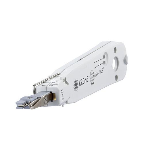 Das Anlegewerkzeug S (S für Sensor) drückt eine Kabelader in den LSA-PLUS® Schneidklemmkontakt in eine definierte Position und schneidet im gleichen Arbeitsgang die Ader auf Länge ab