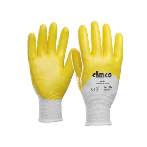 Arbeitshandschuh „Nitril“ gelb/weiß, Größe 11/XXL, Nitrilhandschuh mit Strickbund, Polyester mit 3/4-Nitril-Beschichtung, nach DIN EN 388