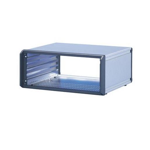Ungeschirmt. Vorbereitet für Erdung. Tischgehäuse mit vorkonfektionierten Ausbauteilen gemäß IEC 60297-3-101. Vorbereitet für 19″-Ausbaukomponenten wie z. B. Steckbaugruppen und Europakarten. Lüftungsschlitze im Bodenblech.