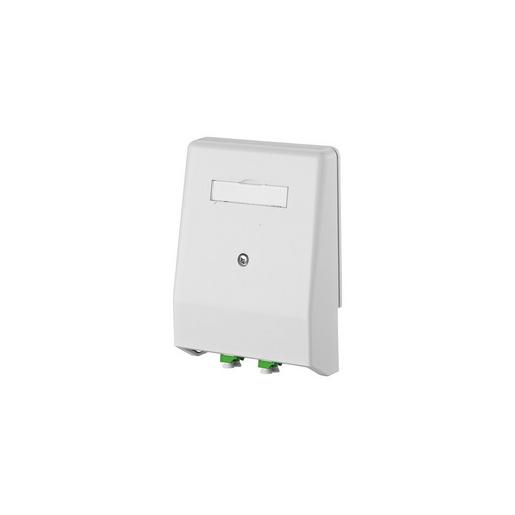 Glasfaser-Anschlusseinheit zur Unterputzmontage mit LWL Kupplungen, Bestückt mit 2 LC-D, 2 SC-D oder 4 ST Kupplungen, Einhaltung eines Biegeradius von ca. 30 mm durch integriertes Kabelreservoir , Steckrichtung 10° nach unten geneigt, Zugentlastung mit Kabelbinder möglich, mit Sichtfenster für beiliegende Beschriftungseinlage , geeignet für vorkonfektionierte Kabel bzw. Stecker-Vor-Ort-Konfektionierung, Geeignet für Mini-Breakout Kabel, Farbe der Abdeckteile reinweiß RAL 9010, Varianten: 2 LC-D, 2 SC-D, 4 ST