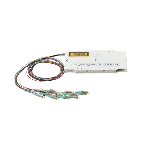 OpDAT VS 12xLC OM3 Crimp Vorkonfektionierte Standard-Spleisskassette zum Einbau inPatchfelder, bestueckt mit 12 Pigtails, einemCrimpspleissschutzhalter und rastbarem Kassettendeckel. ZumAnspleissen von LWL Innen- oder Aussenkabeln. Pigtails:Stecker: LC gemaess IEC 61754-20, Gehaeuse beige, Knickschutzaqua,mit transparenter StaubschutzkappeAder: 0,9 mm Kompaktader (I-V, STB), Primaer- undSekundaer-Coating gleichgefaerbt, abisoliert undspleissfertig eingelegt in Spleisskassette. Farblichsortiert nach IEC 60304 (rot, gruen, blau, gelb, weiss,grau, braun, violett, tuerkis, schwarz, orange, rosa). (IEC11801), IEC 60793-2-10 A1a.2, ITU-T G.651.1Pigtaillaenge ausserhalb der Spleisskassette kaskadiertzwischen 80cm (rot, gruen) und 90cm (orange, pink).Einfuegedaempfung: max. 0,4 dB gegen Master (IEC 61300-3-4,MethodeB), bei 850 und 1300 nm gemessen. 100% geprueft.Rueckflussdaempfung: min. 35 dB (IEC 61300-3-6).Nach Messung abschliessende visuelle Pruefung der Steckernach IEC61300-3-35. Standard-Spleisskassette mit Deckel:Einbaumass: LxHxT 154,50 x 92 x 10 mm Etikett mit Seriennummer in Spleisskassette eingeklebt undPruefprotokoll beigelegt. Metall und Kunststoffteile recyclingfaehig, RoHS-konform,Nachweise des Herstellers sind beizufuegen.