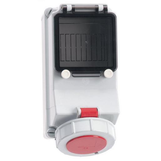 Wandsteckdose QUICK-CONNECT abgesichert 32A 5p (3P+N+PE) 400V (200/346 – 240/415V~) 6h IP67, Frequenz: 50/60Hz, Technische Kennfarbe: rot RAL 3000, Gehäusegröße: 225×118 mm (HxB), Kontaktträger/Kontakte: der Kontaktträger ist aus Polyamid, die Kontakte sind Messing vernickelt, Maximaler Leiterquerschnitt: 10,0 qmm, Gehäusematerial: Polycarbonat, Anschlusstechnik: schraublose Federklemmtechnik als Käfigzugfederklemme mit Kontex-Kontakt, Absicherung: ohne, Kabeleinführung: 2xM25 oben, 2xM25 unten, Gerätefarbe: Betätigungsklappe rauchtopas, Klappdeckel rot RAL 3000, Bajonettring grau RAL 7035, Gehäuseschrauben grau RAL 7035, Gehäuseunterteil grau RAL 7035, Gehäuseoberteil grau RAL 7035, Gerätehöhe: 260 mm, Gerätebreite: 118 mm, Gerätetiefe: 150 mm, Sonstige technische Eigenschaften: Die Leitungseinführung ist einmal oben offen, einmal oben verschlossen, zweimal unten verschlossen, Im Gehäuseunterteil ist eine Tragschiene vorhanden, Die Sicherungsabdeckung ist mit Vorprägungen, Eine Tragschiene für 5 Teilungseinheiten waagerecht ist unter der Betätigungsklappe vorhanden