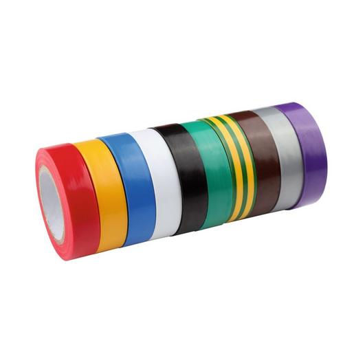 Universal-Isolierbänder, PVC-Folie, einseitig beschichtet mit nicht-korrosivem, druckempfindlichen Kautschukkleber, flammhemmend, selbstverlöschend, gute elektrische und mechanische Eigenschaften, wasser-, witterungs- und UV-beständig, silikonfrei, Allround-Klebeband in sehr guter Qualität zum Bündeln, normalen Isolieren, farbigen Kennzeichnen (z. B. Schutzleiter in grün-gelb) und Verstärken, ideal für viele Elektroinstallations- und Reparaturarbeiten, 10 farbig sortiert, LxB 10mx15mm.