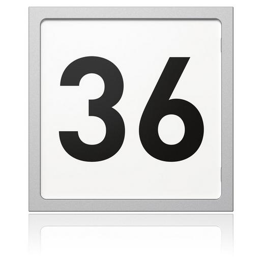Für modulare Türstationen und Briefkastensysteme. Zur Informationsanzeige, z. B. Hausnummer. Infofläche beleuchtet über weiße LED. Beschriftbar. Schriftfeld auswechselbar. Abmessungen Schriftfeld 80×80 mm (BxH). 1fach, silber.