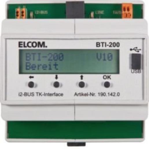 BTI-200 TK Schnittstelle REG i2Audio lichtgrau. Telekommunikations-Interface für Sprechanlage/Intercom nach DIN EN 50486 in i2Audio-Technik. Reiheneinbaugerät zur Hutschienen-Montage. Interface zum Anschaltung von Telefonanlagen mittels analoger a/b Schnittstelle an das ELCOM -System. Bis zu 256 Teilnehmer/Rufziele programmierbar. 2-zeiliges Display und 4 Tastenbedienung zur einfachen Konfiguration, USB-Schnittstelle zur Konfiguration und Datensicherung mit PC Software. Unterstützt Tür-, Intern- oder Etagenrufe. Integrierte Sprachansagen zur Unterscheidung der Rufart, 8 individuell konfigurierbare Sprachansagen zur Türunterscheidung. Rufvariante mit 2 möglichen Zielrufnummern pro Teilnehmer, Rufvarianten 1, 2 oder Kettenruf einstellbar. Umschaltung der Rufvarianten per Sprachmenü, Displayeingabe oder PC-Software. Steuerung der Schaltfunktionen per MFV-Nachwahl. Schaltfunktionen: Türöffner, Lichtrelais, 4x -Relais und Tür- und Kameraumschaltung. Direktanwahl und Steuerung von bis zu 8 Türstationen und deren Türöffner, Internrufe zu Innenstationen, Anwahlschutz durch PIN-Abfrage, Steuercode für Türöffnung und Gesprächsannahme und Gesprächsende einstellbar. Ruf- und Sprechdauer individuell für jede Rufart einstellbar. DREHFIX-Funktion: Ein-Mann-Inbetriebnahme durch Adressierung mit Drehcodierschalter.