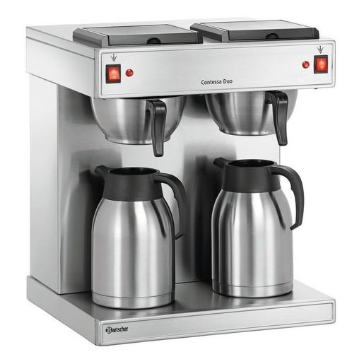 2 Edelstahl-Isolierkannen, Inhalt je 2 Liter, Aufbrühzeit pro Kanne ca. 8 Minuten, Mindest-Aufbrühmenge ca. 0,5 Liter, Maße: B 430 x T 400 x H 520 mm, Anschlusswert: 3,2 kW / 230 V, Gewicht 14,21 kg