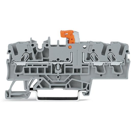 3-Leiter-Trenn- und Messklemme mit Prüfmöglichkeit Trennmesserhalter orange für Tragschiene 35 x 15 und 35 x 7,5 2,5 mm² Push-in CAGE CLAMP® 2,50 mm² grau
