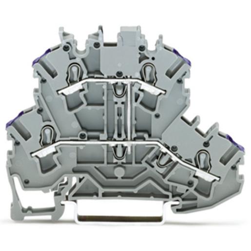 Doppelstockklemme 4-Leiter-Durchgangsklemme L ohne Beschriftungsträger für Anwendungen Ex e II geeignet intern gebrückt Leitereinführung violett bedruckt für Tragschiene 35 x 15 und 35 x 7,5 2,5 mm² Push-in CAGE CLAMP® 2,50 mm² grau
