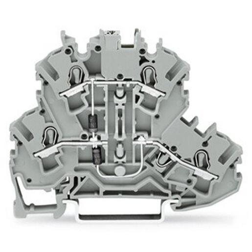 Bauelementklemme Doppelstock mit 2 Dioden 1N4007 Anode oben, Anode rechts für Tragschiene 35 x 15 und 35 x 7,5 2,5 mm² Push-in CAGE CLAMP® 2,50 mm² grau